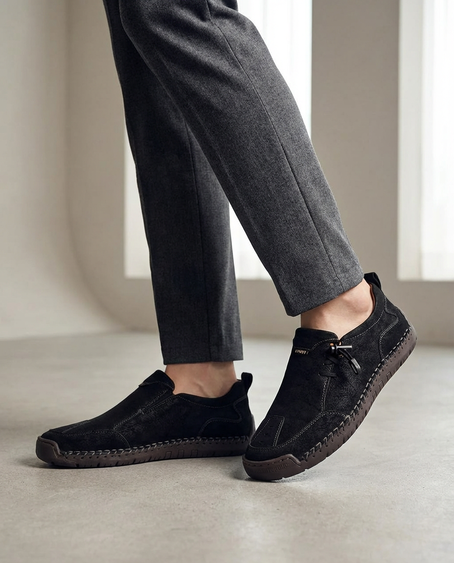 Yes. The upper is crafted from premium split leather, selected for durability, flexibility, and a refined finish.