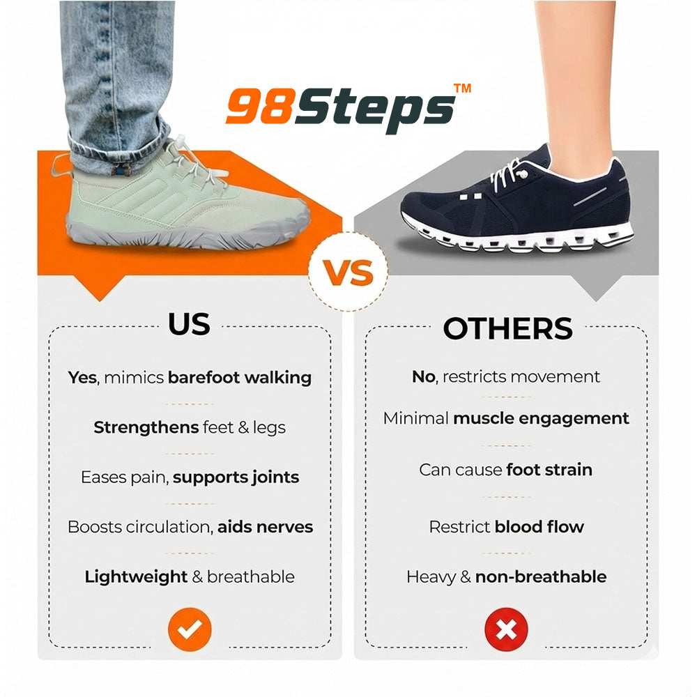 Unlike traditional shoes that squeeze and restrict, 98Steps™ flex naturally with every step—giving you the freedom and support you need whether you’re running, hiking, or taking a casual walk.